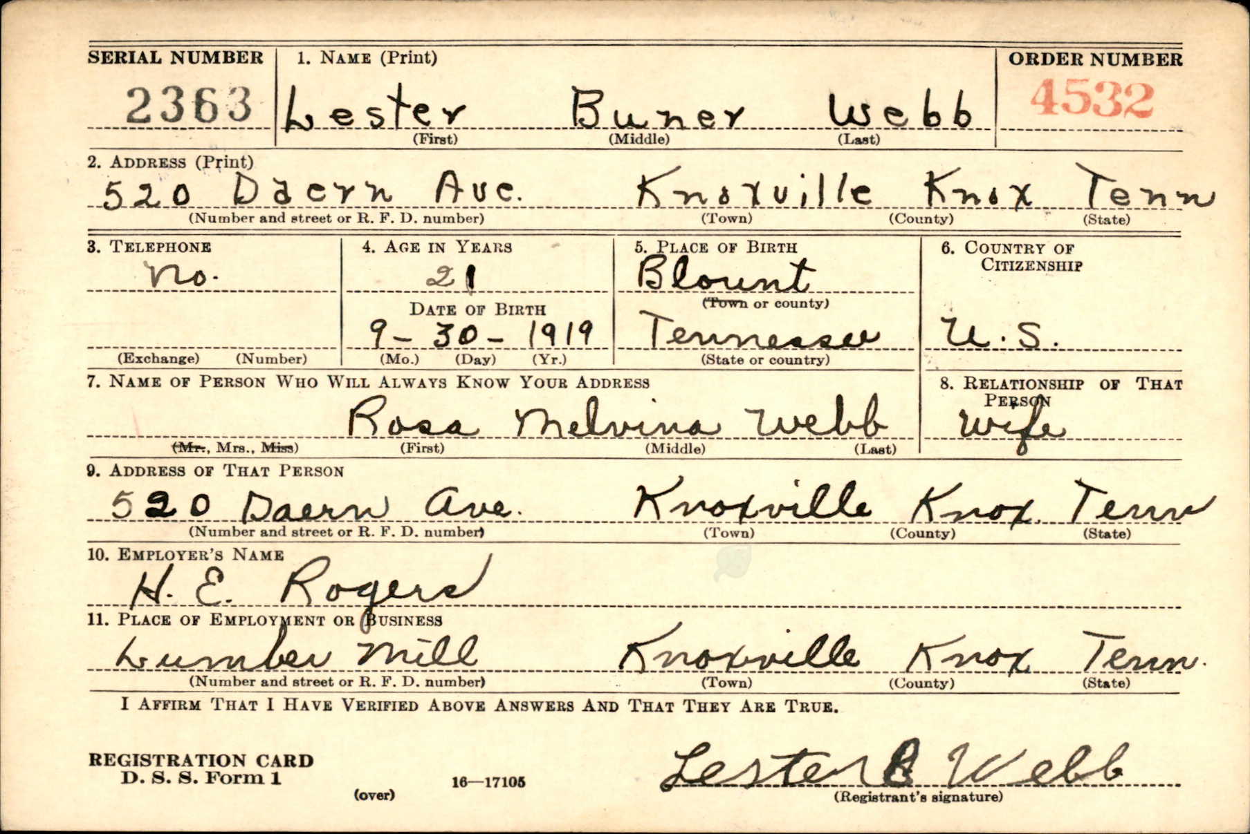 Lester Buner Webb was the son of Clifford W. Webb and Callie Rebecca Jones. Husband of Rose Smith.