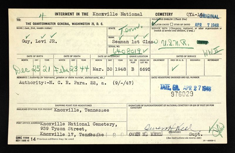 - Burial/Memorial Location: Knoxville National Cemetery, Knoxville, TN