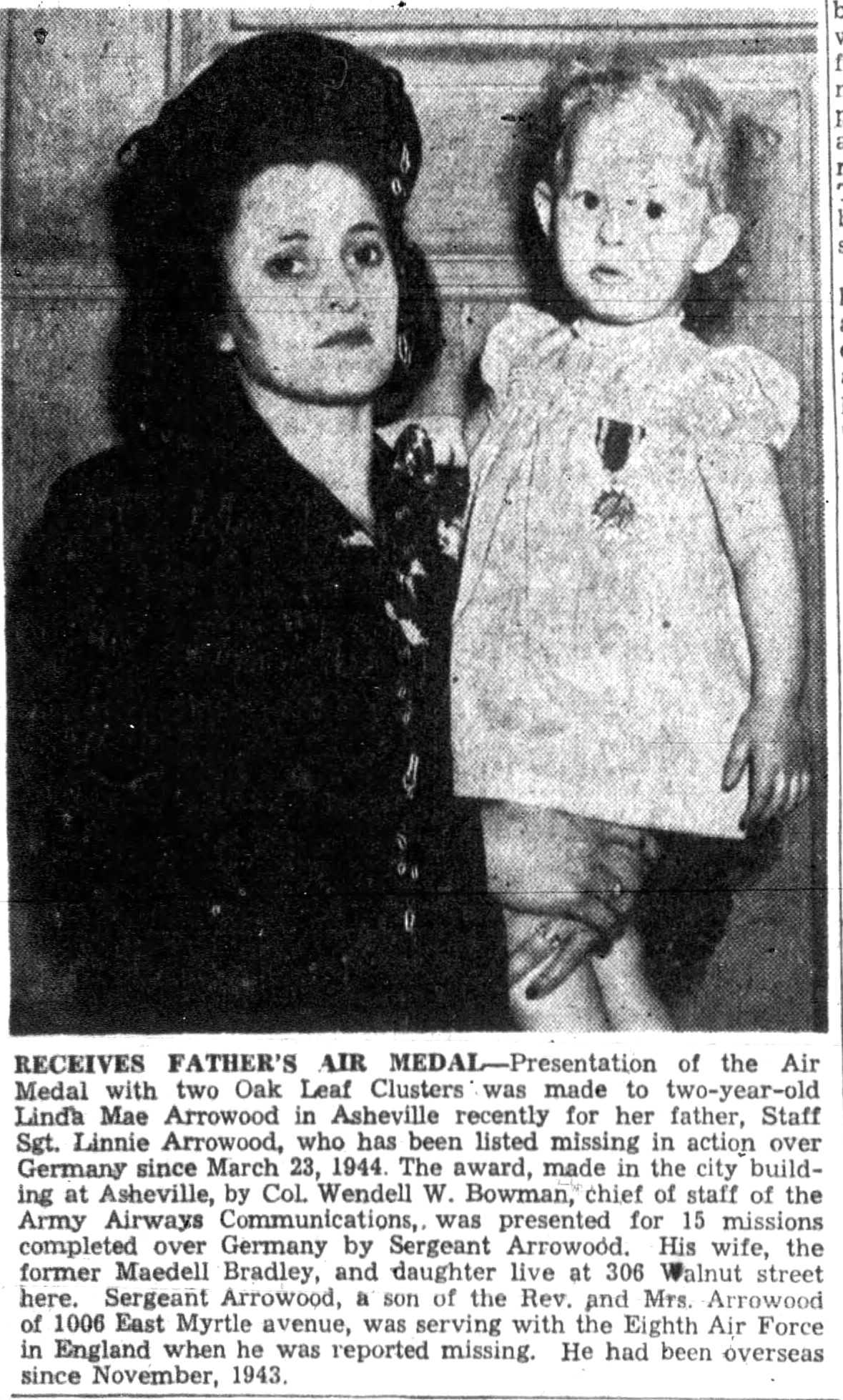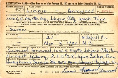 He was 23 years old and the son of Reverend Samuel A. Arrowood and Sarah Elizabeth Whaley. Linnie was married to Maedell Bradley and they had one daughter and a grandson, Russell.