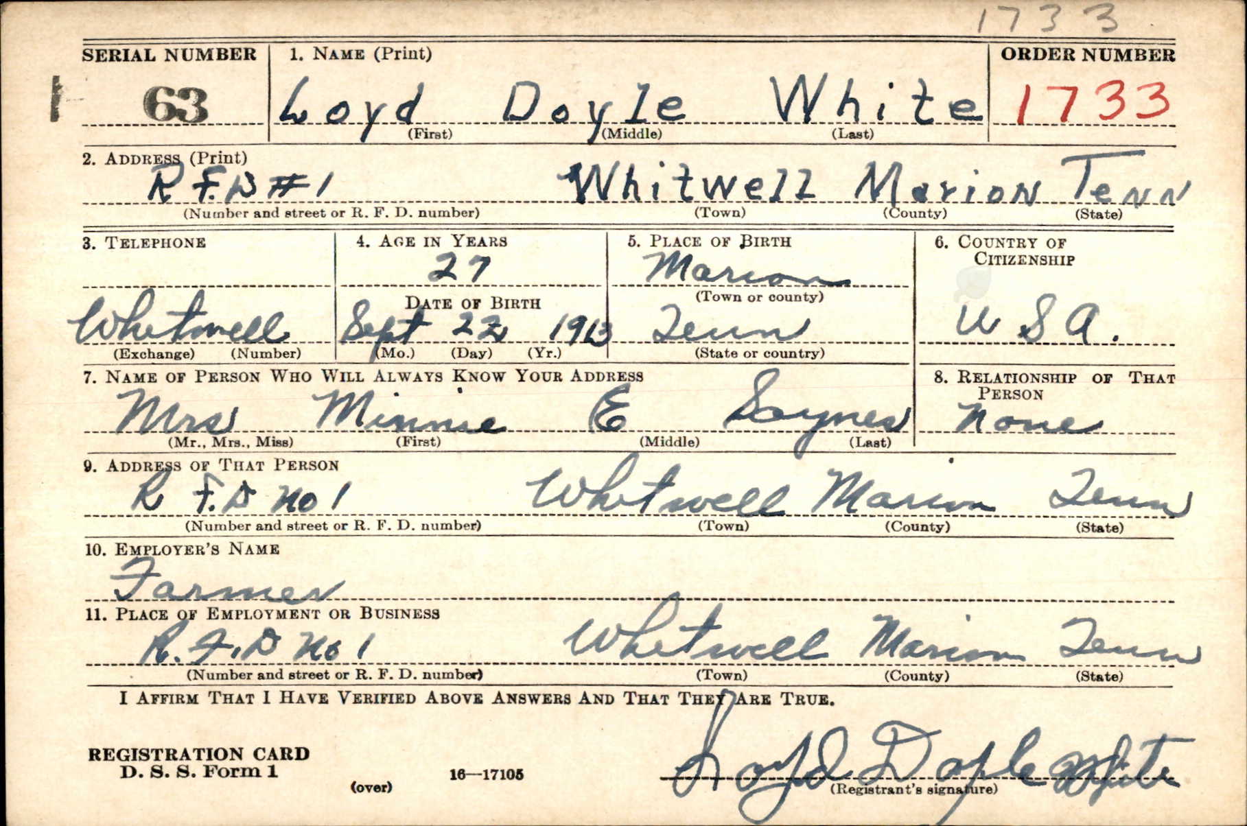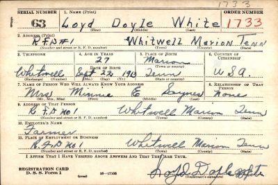 Lloyd (also spelled as Loyd) D. “Doyle” White was the son of Robert Franklin White and Pearl Ellen Coppinger.