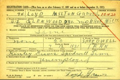 He was registered at Monroe County in Michigan.