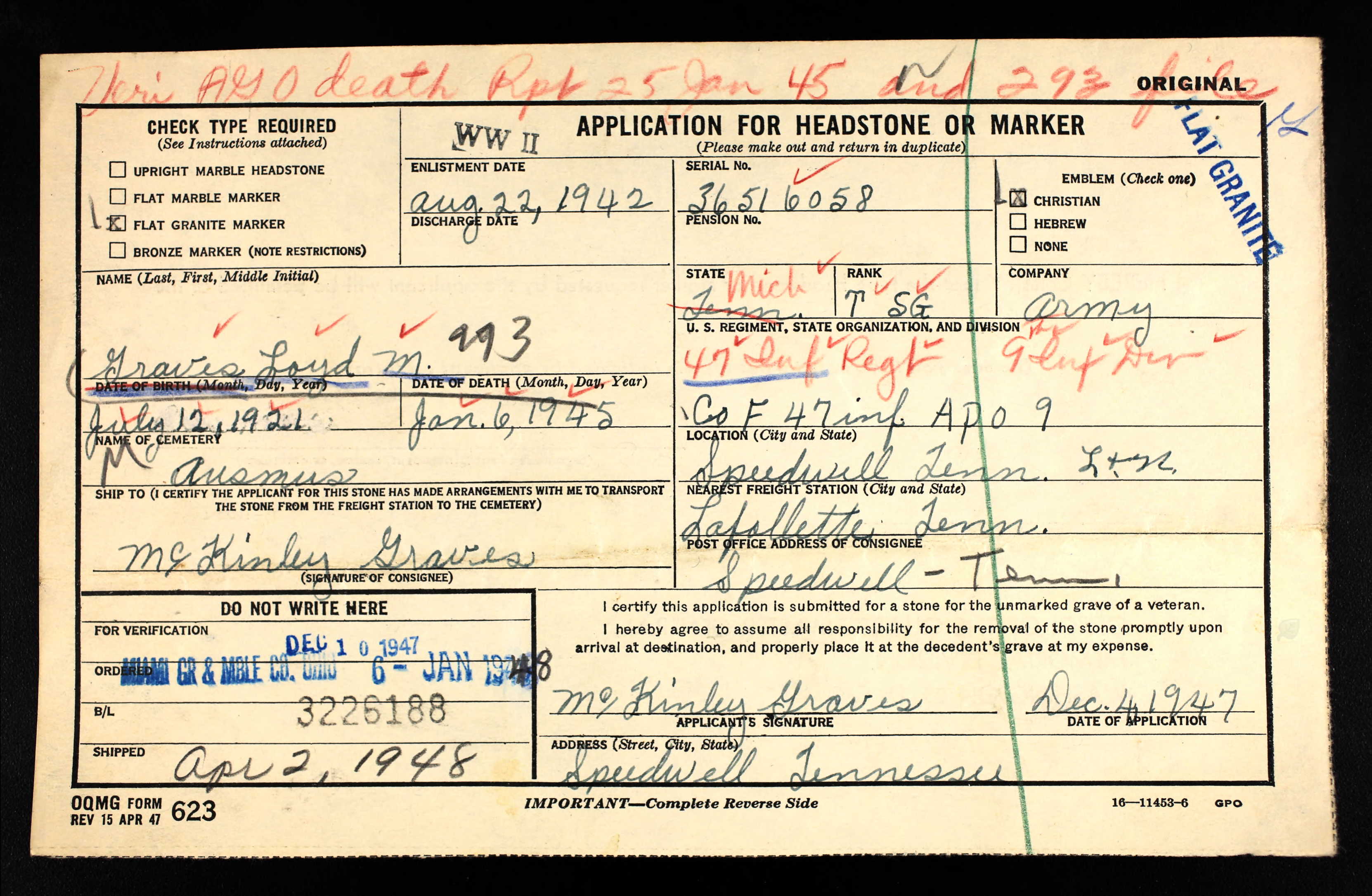 - Service Branch: Army/Army Air Forces