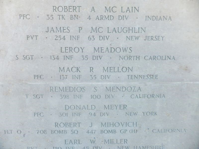 Memorialized at Lorraine American Cemetery, St. Avold, France