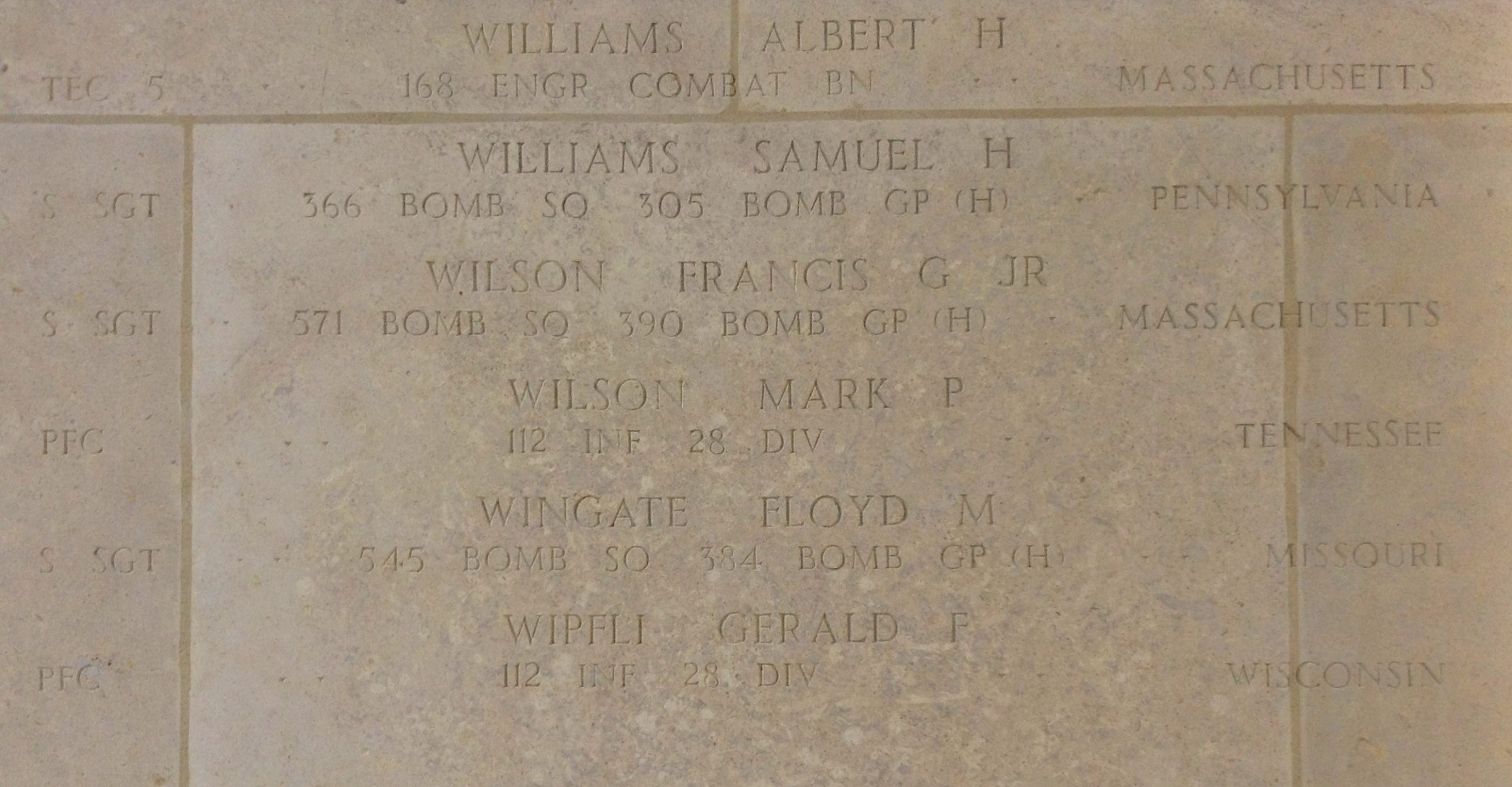 Wilson is memorialized on the Tablets of the Missing at Henri-Chapelle American Cemetery, an American Battle Monuments Commission site in Plombières, Belgium, along with the others still missing from World War II. DPAA shared that a rosette will be placed next to his name to show he has been found.