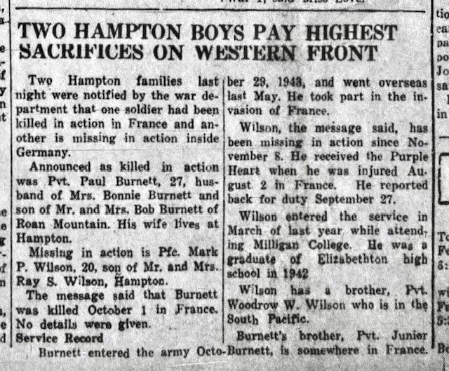 On Nov. 8, he was reported missing in action. According to the Defense POW/MIA Accounting Agency(DPAA), his body was unable to be recovered and he was never reported as a prisoner of war by the Germans. After the war, Wilson was declared killed in action.