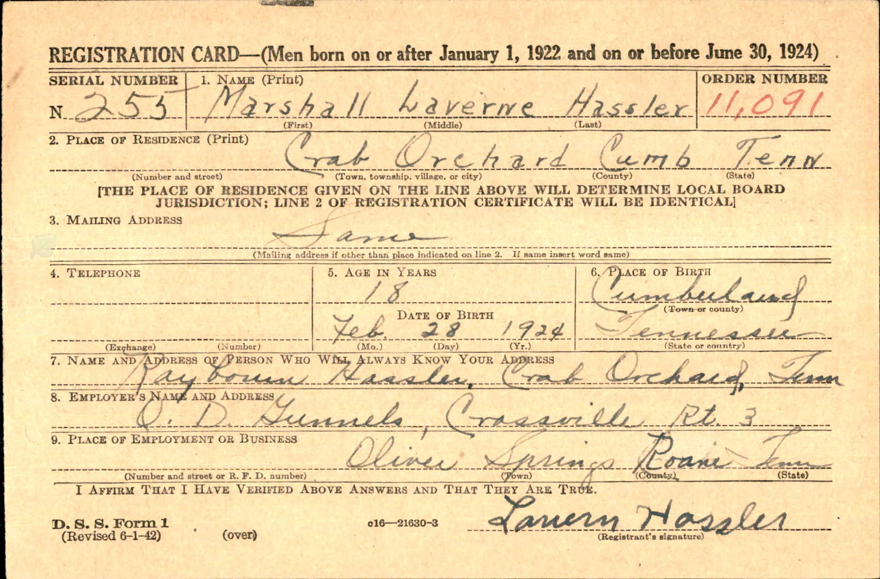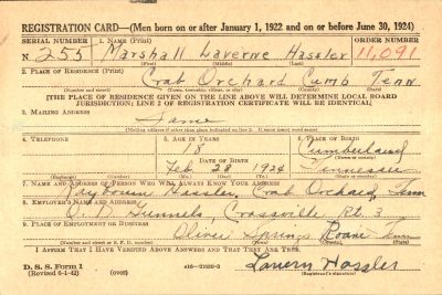 Marshall Laverne Hassler was the son of Rayborn Hassler and Ella Renfro.