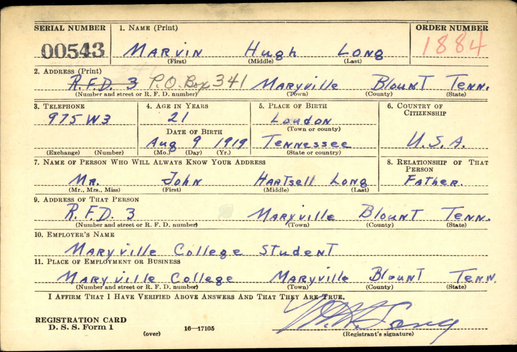 Marvin Hugh Long was the son of John Hartsell Long and Susan Lorena Jane Clemens. Husband of Dorothy Jane Shields.