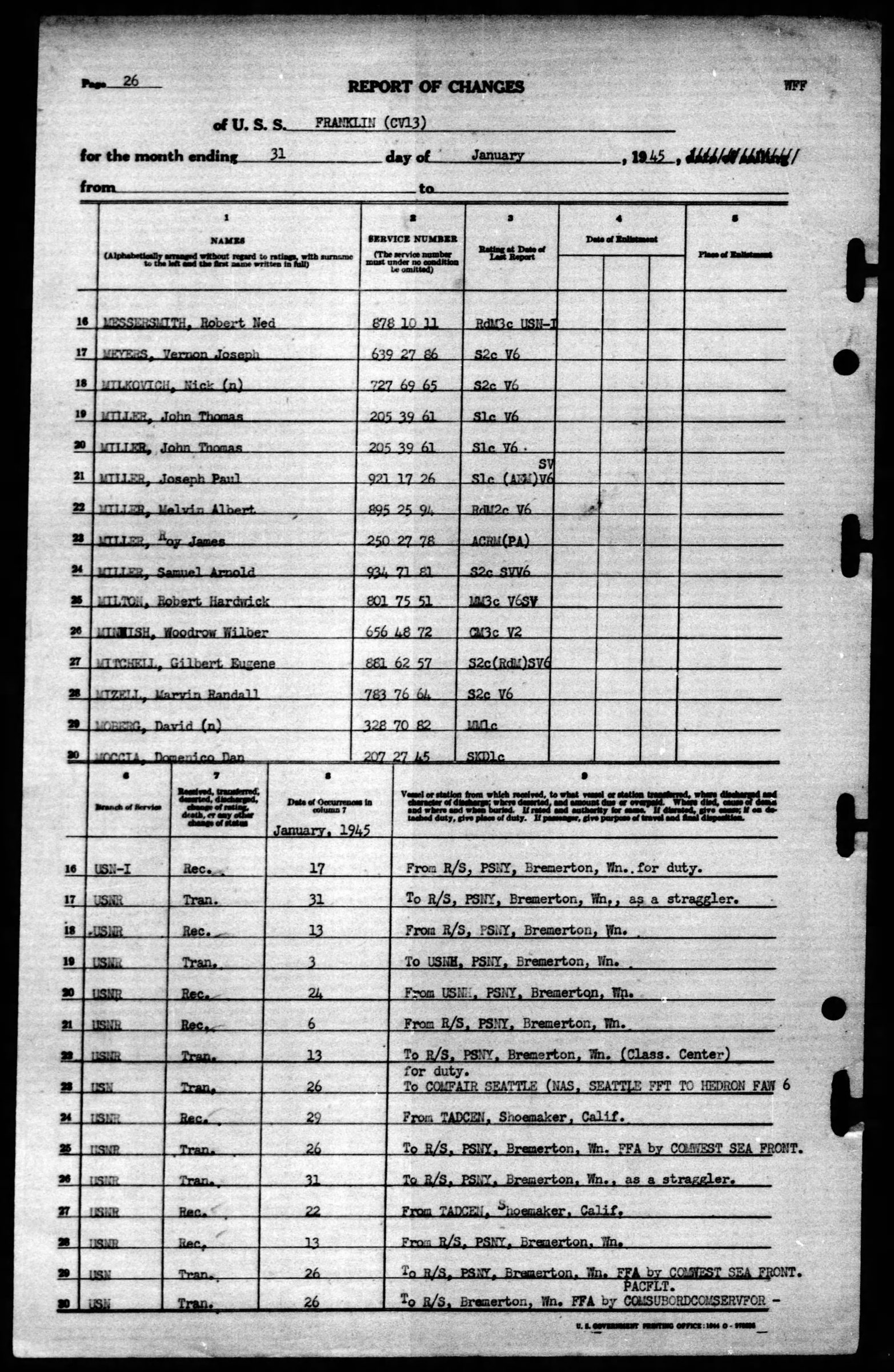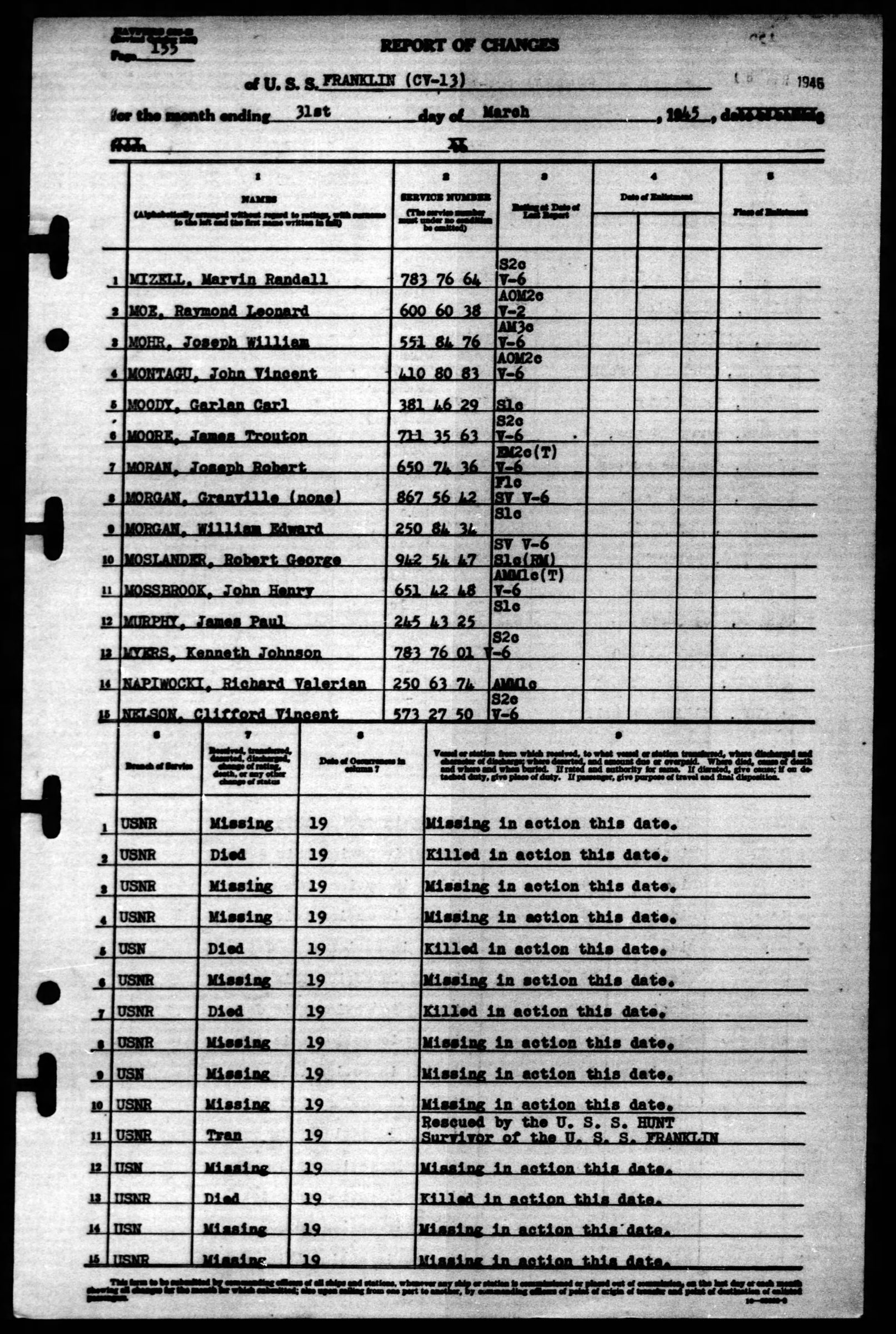 - Division/Assignment: USS Franklin (CV-13)