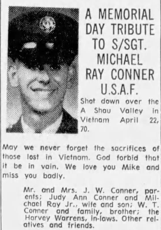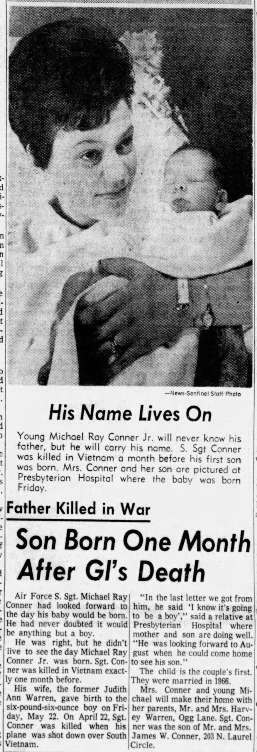 After returning to base and starting to work we learned that Mike’s widow had given birth to a son one month to the day after the crash. Mike Jr. was born 22 May 1970. WE took up a collection and started a college fund for him, and I must say 63 guys gave til it hurt. I’M so proud of them.