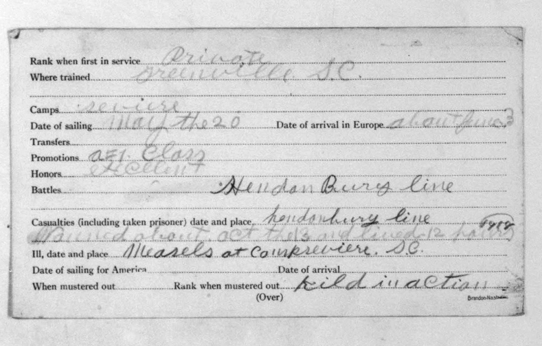 - Division/Assignment: Company C, 117th Infantry Regiment, 30th Infantry Division