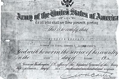 Milburn’s the son of William M. Moffitt and Sarah Emaline “Sally” Rominger. His older brother James Jessie Moffitt and his younger brother Robert Hobart Moffitt also served in Company E, 117th. Robert was wounded in action and he like Milburn fibbed about his age when enlisting at age 16 years and 6 months old to be with his brothers.