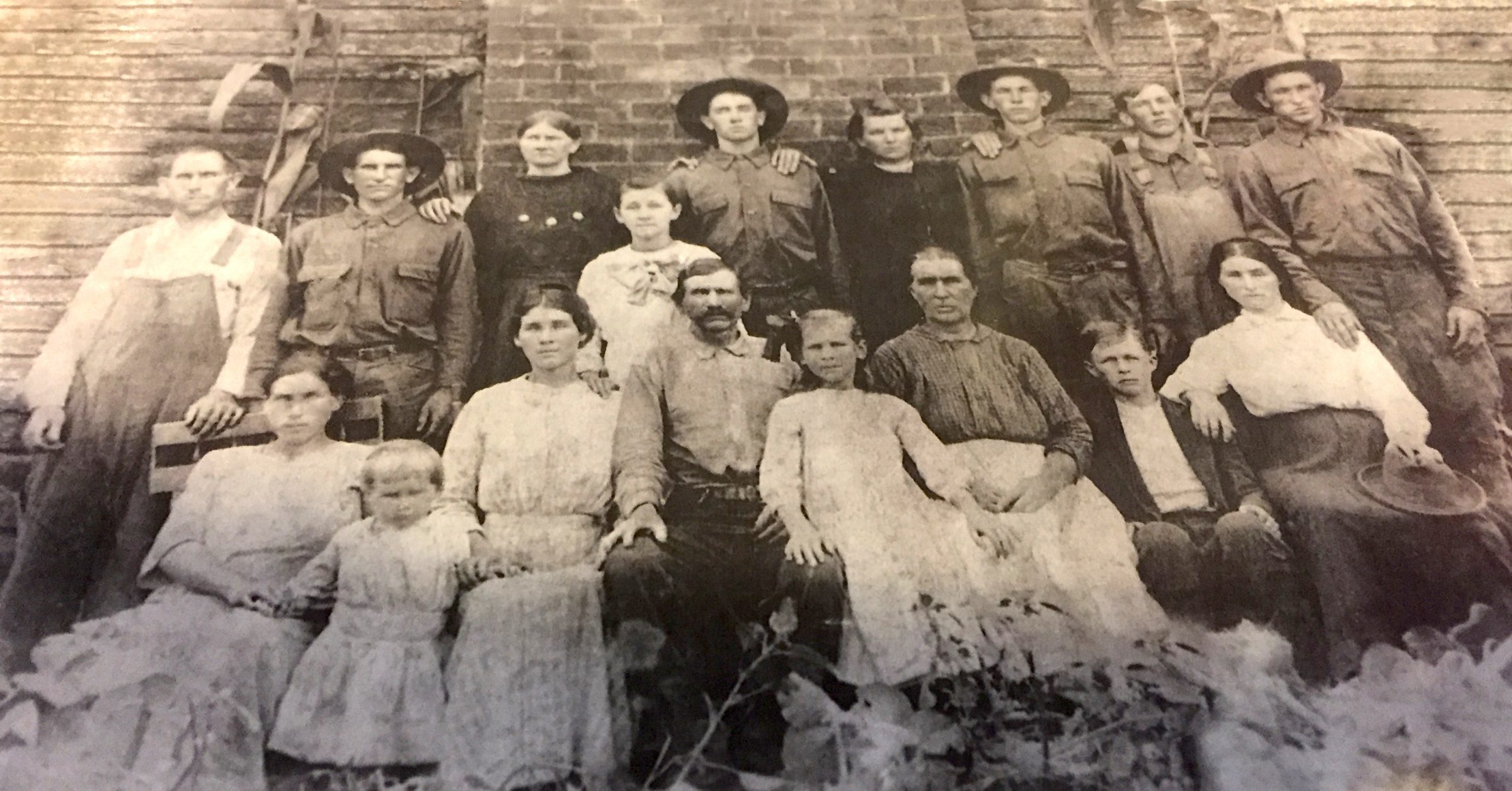 In family picture below, in uniform left to right back row: James, Robert, Milburn, and Arthur with a big chew of tobacco in his jaw. Photo courtesy of Allen D. Jackson.