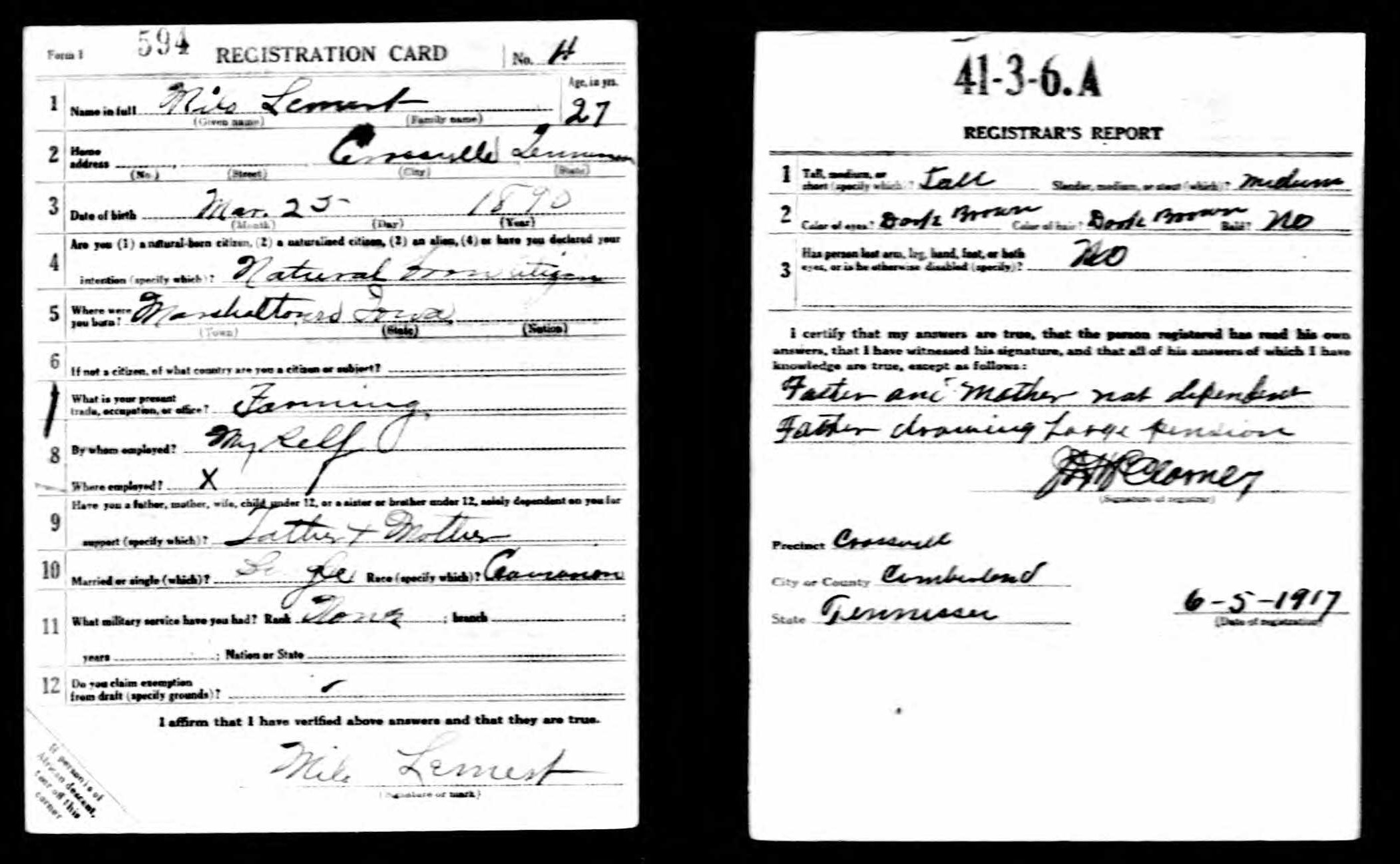 Home address: Crossville, Tenn