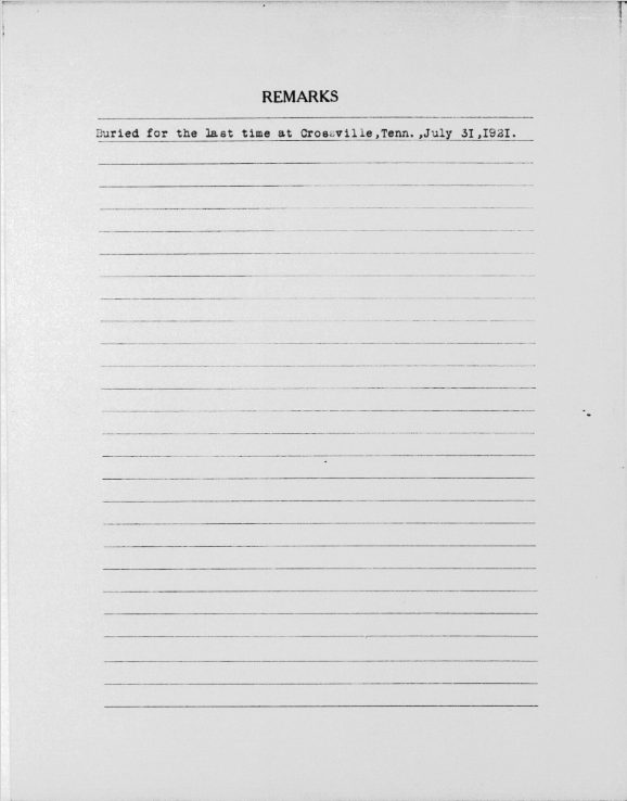 - Burial/Memorial Location: Crossville City Cemetery, Crossville, Cumberland County, TN