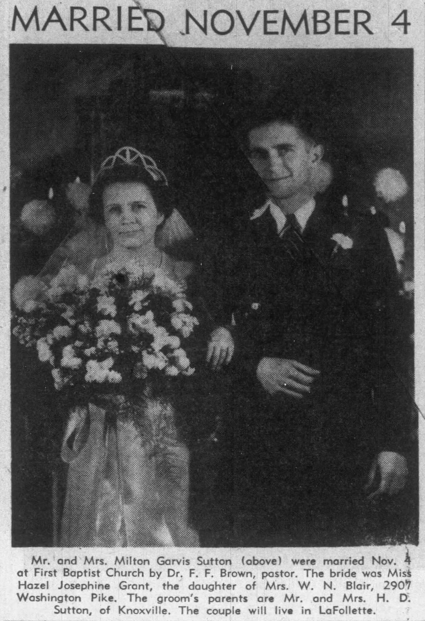 He was the son of Hugh Drexel Sutton and Bertia Smith. He married Hazal Josephine Grant in 1939.