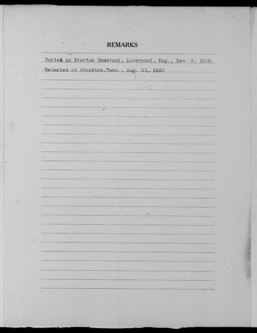 He died of pneumonia at the age of 24, November 23, 1918 at Liverpool, Lancashire, England.