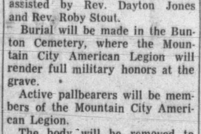 - Burial/Memorial Location: Bunton Cemetery, Johnson County, TN