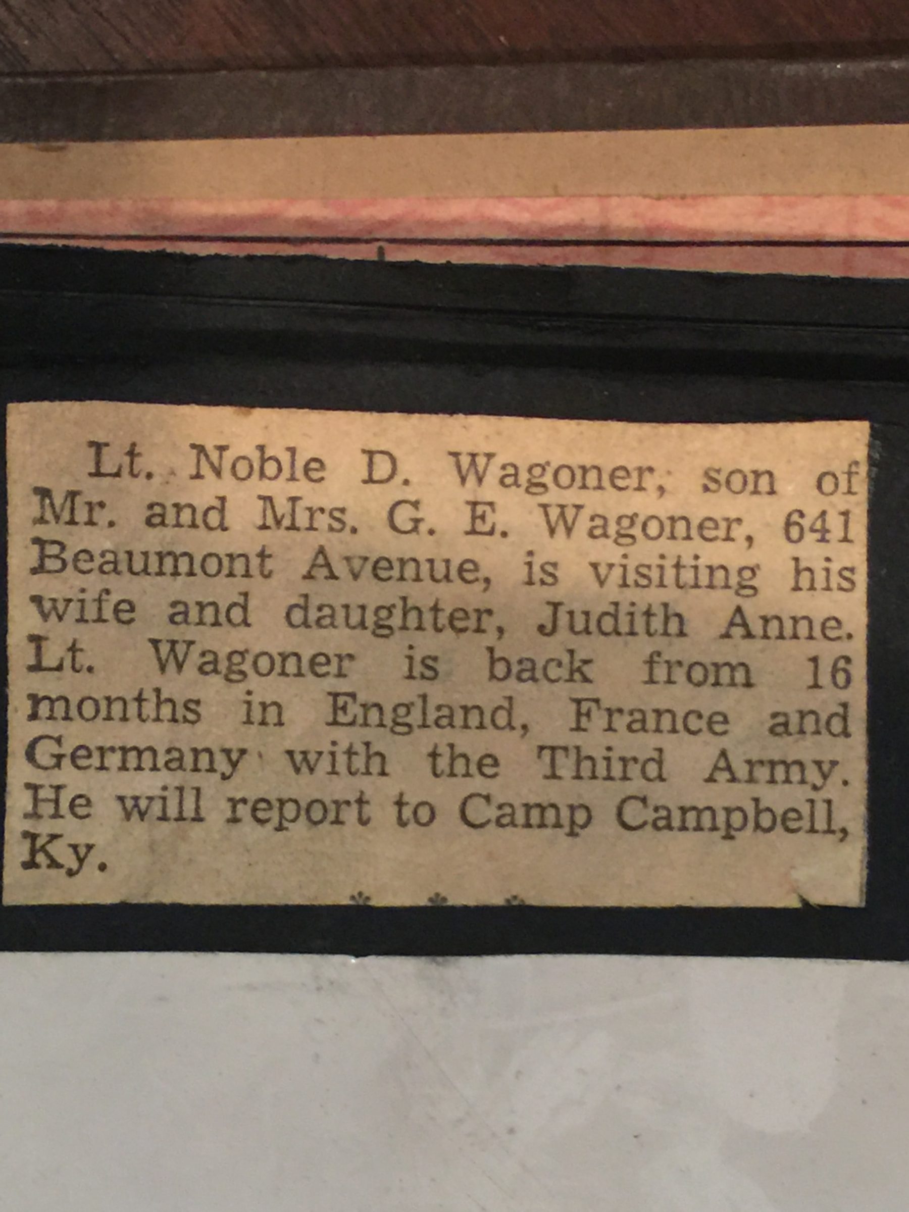 Second Lieutenant Noble D. Wagoner, 620 Beaumont Avenue, Knoxville, Tennessee
