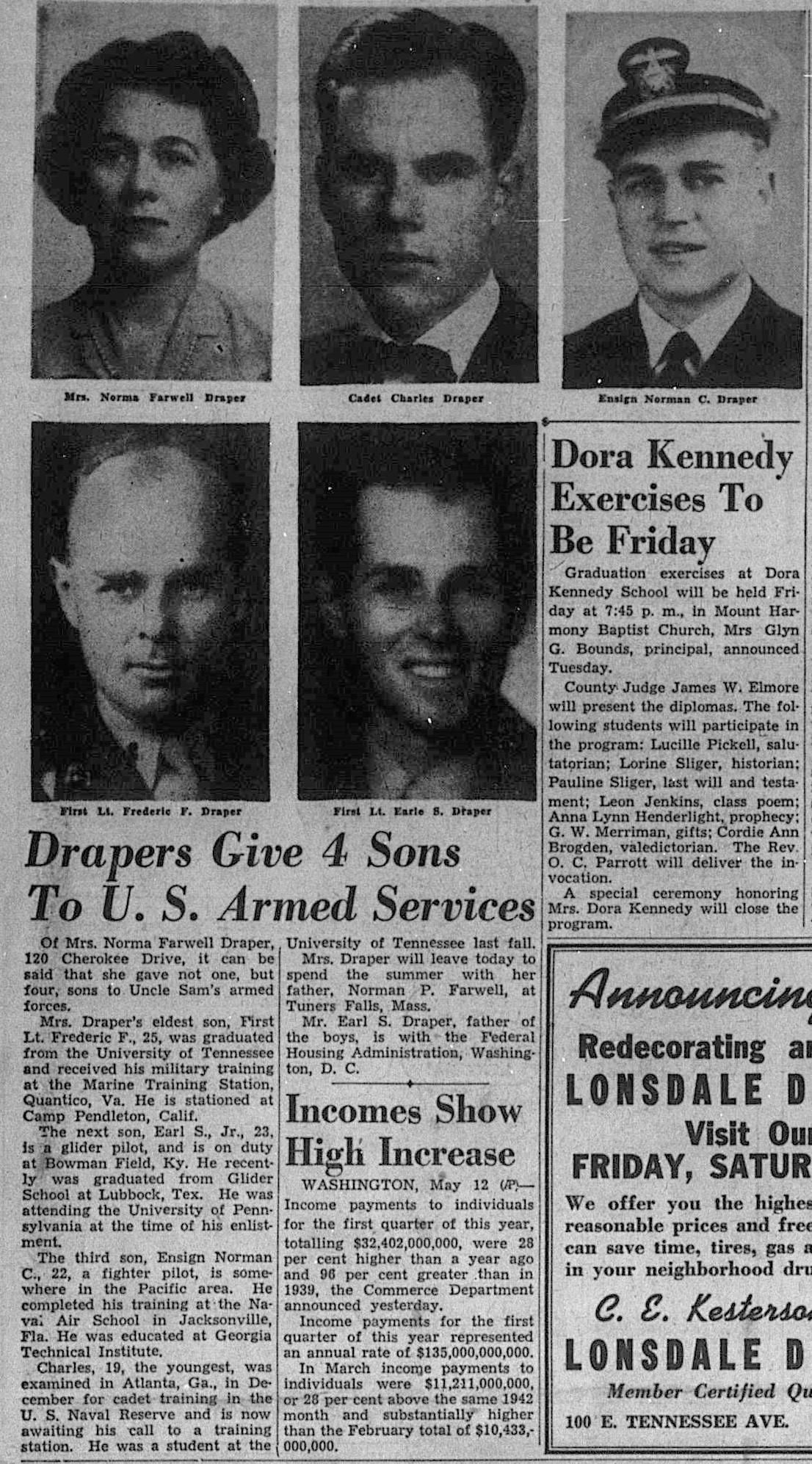 Mother: Mrs. Norma Farwell Draper, 120 Cherokee Drive, Knoxville