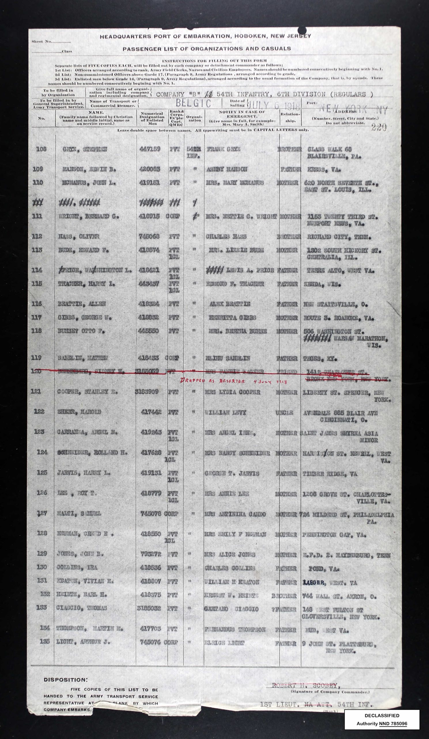 He served with Company B, 54th Infantry, 6th Division during World War I. He had one brother, Charles Hass.