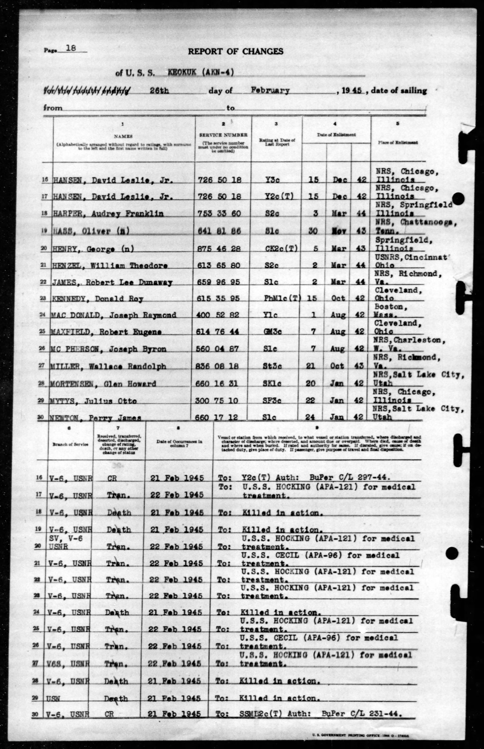 - Division/Assignment: USS Keokuk (AKN-47)