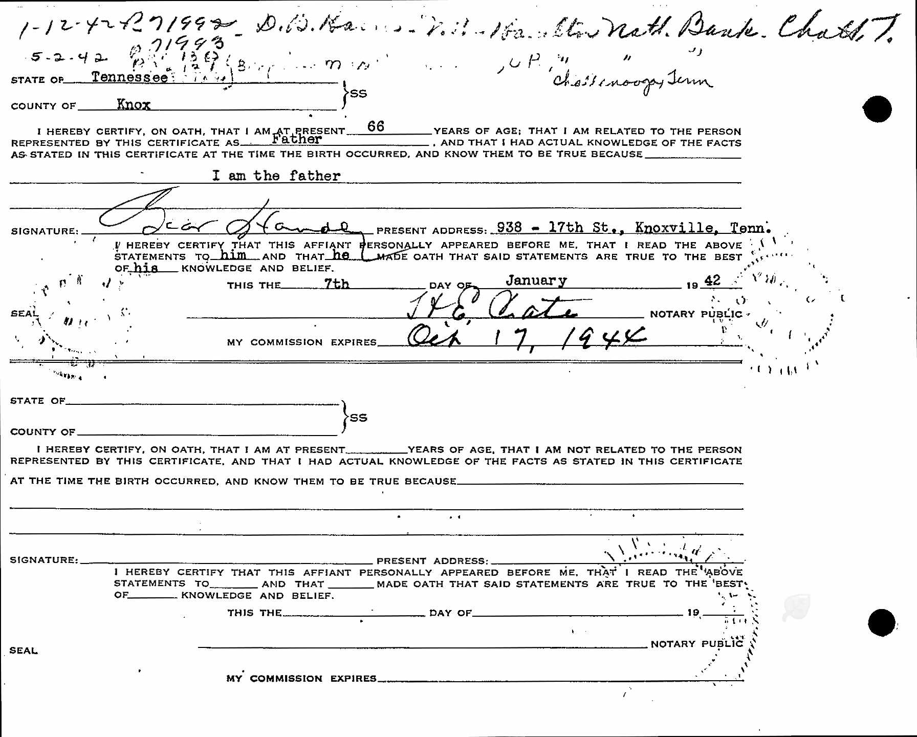 Born 23 September 1909, Chattanooga, Hamilton County, Tennessee