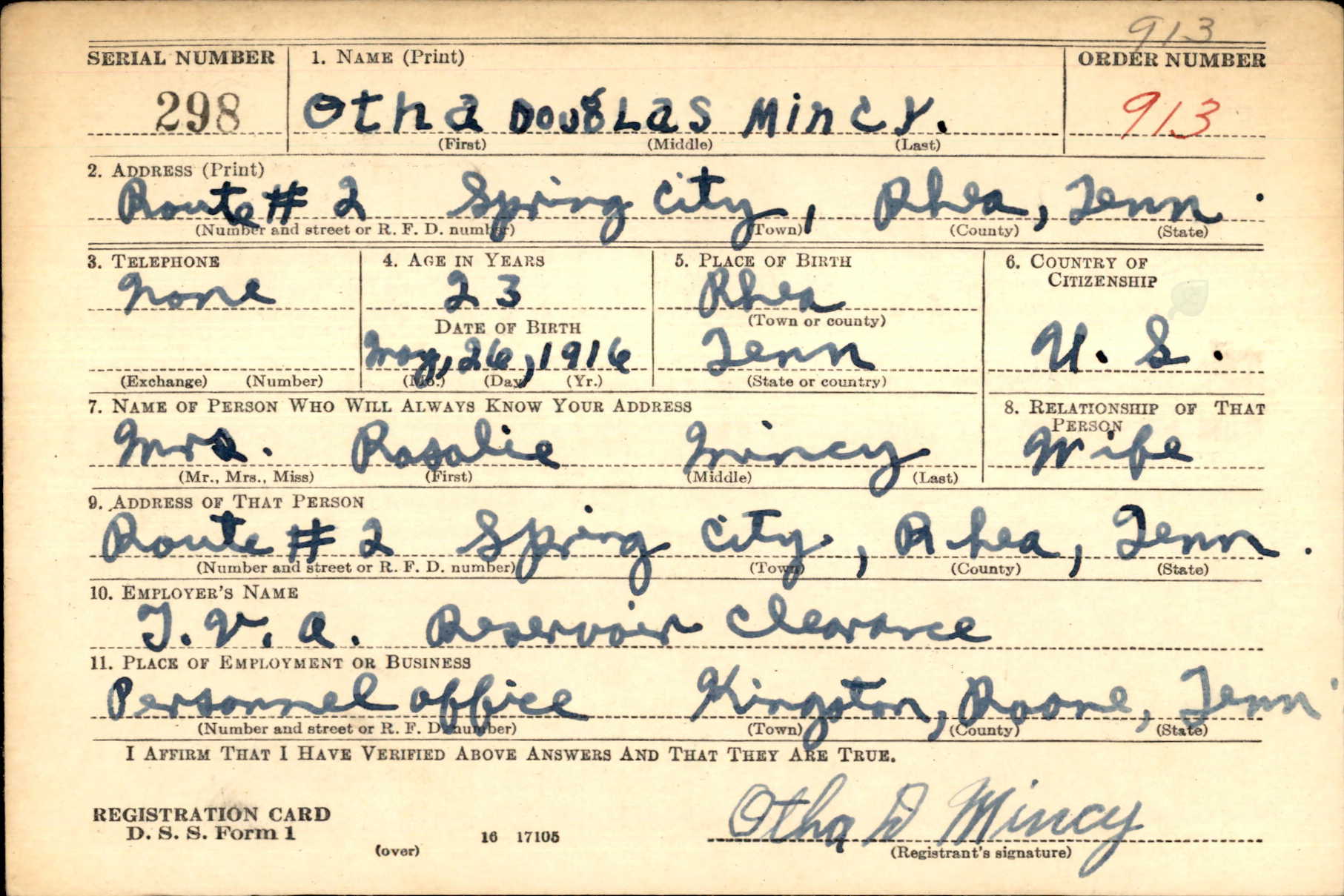 Otha Douglas Mincy was born 26 May 1916, the son of Arhur Jackson Mincy and Callie Heird. He married Rosa Lee Drake on 11 September 1939.
