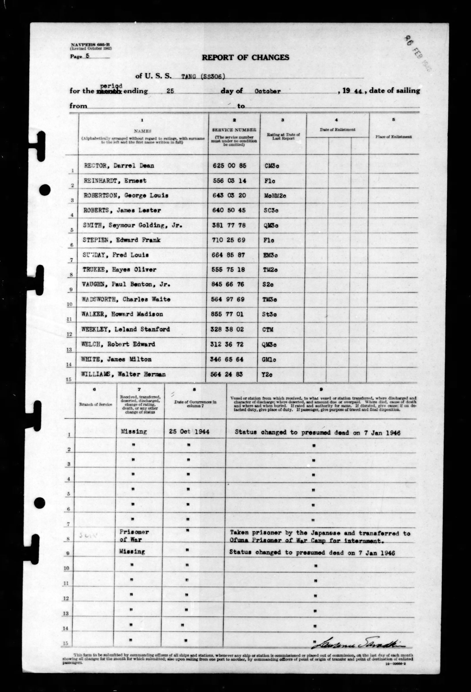 - Division/Assignment: USS Tang (SS-306)