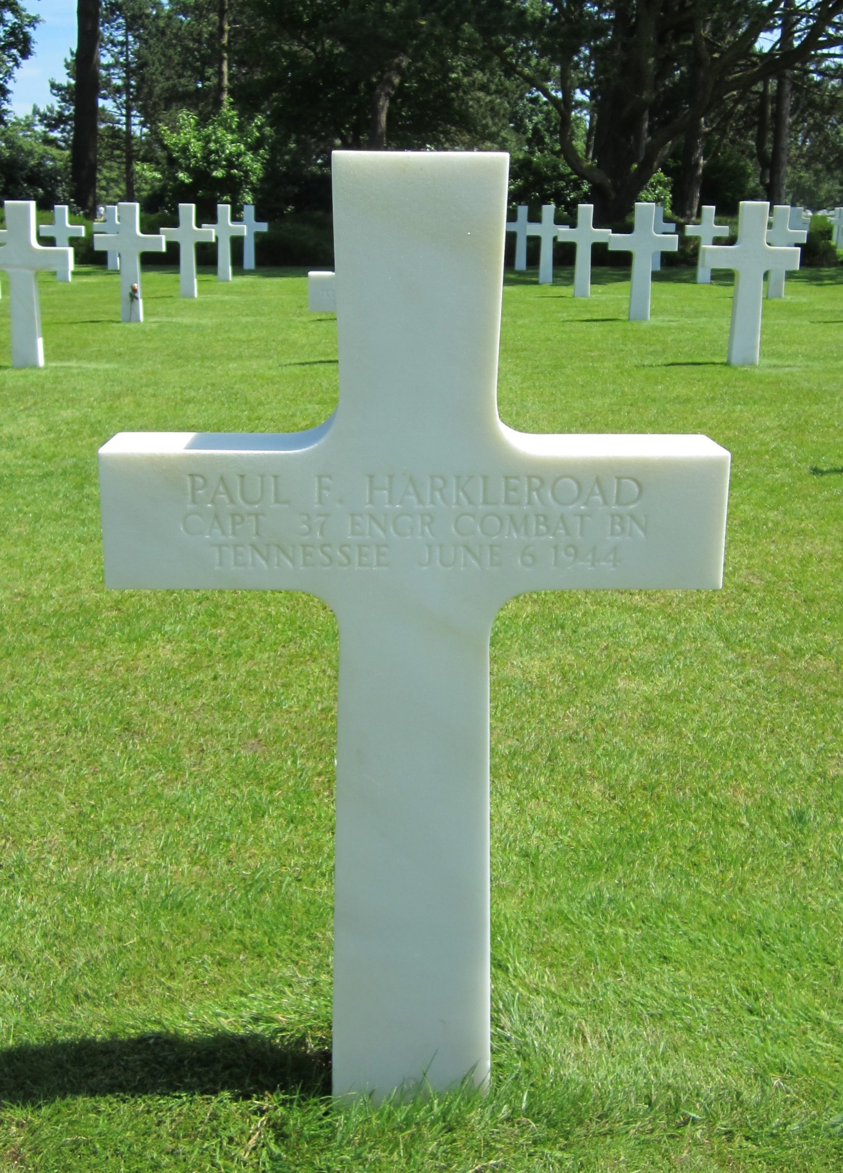 Paul Franklin Harkleroad is buried in the American Cemetery at Normandy, France in Plot G, Row 15, Grave 9.