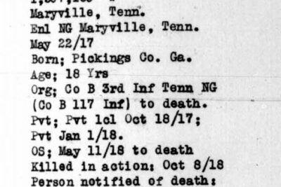 - Division/Assignment: Company B, 117th Infantry Regiment, 30th Division