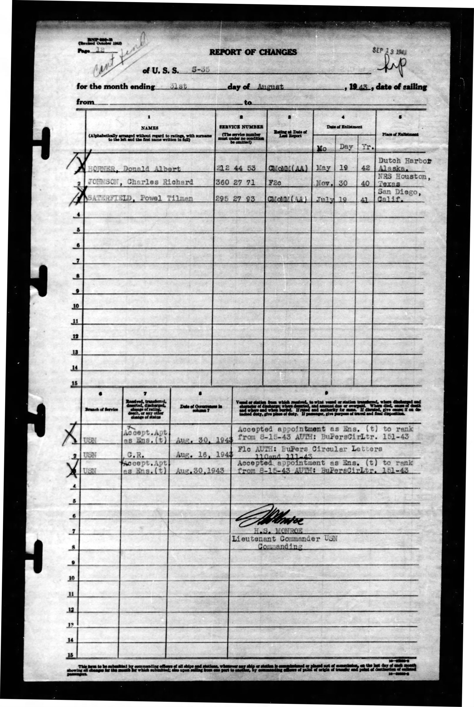 He was stationed at the Submarine Base Barracks at Ewa, Honolulu, Hawaii in 1940.