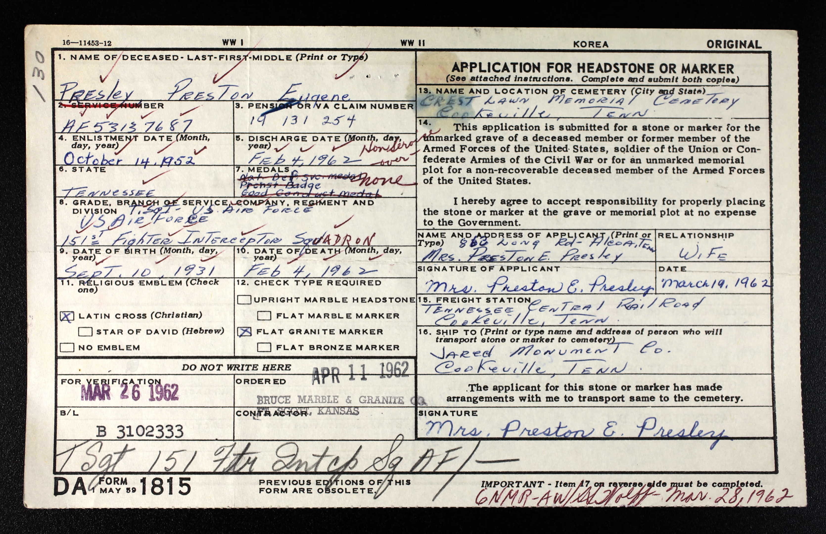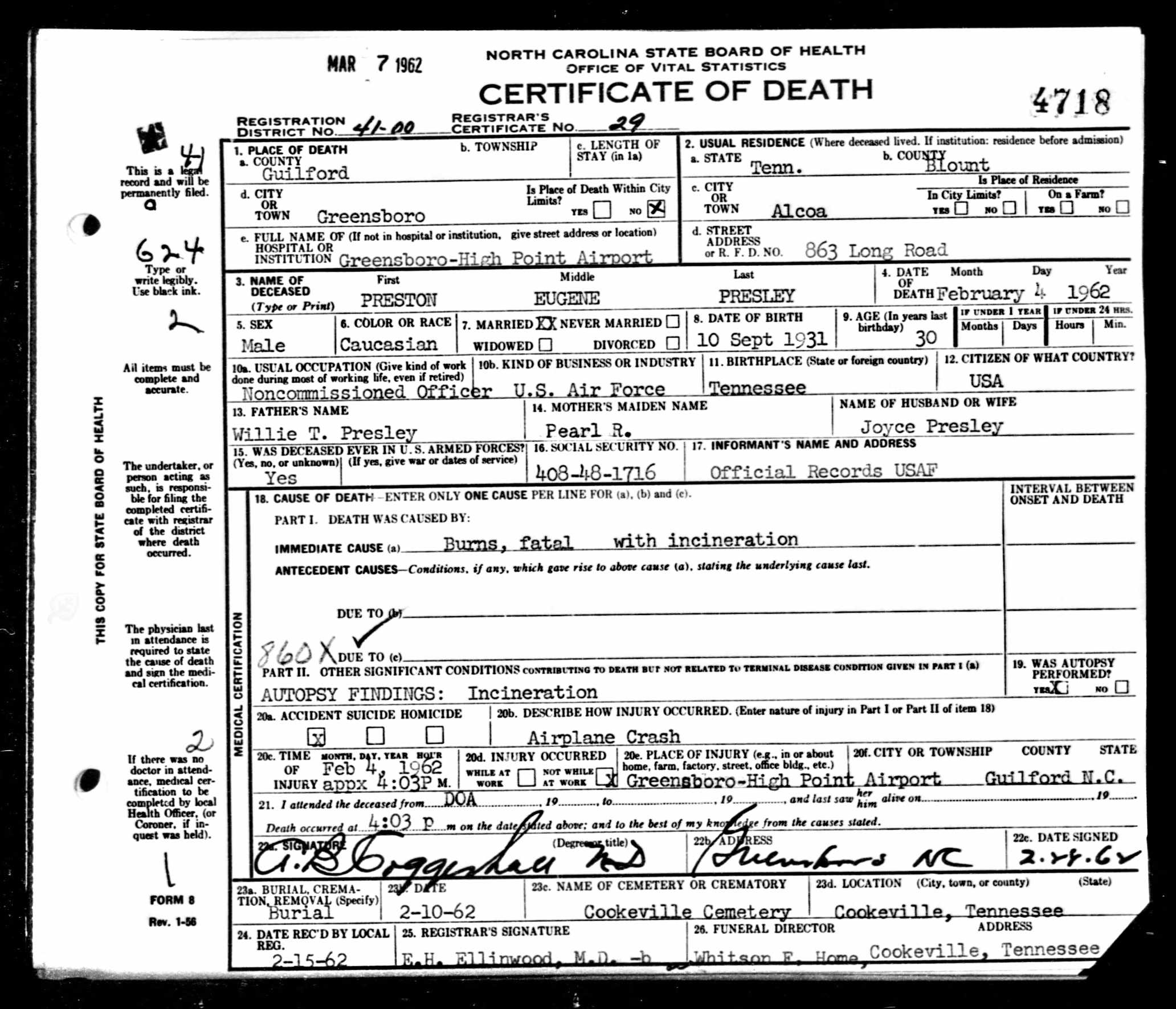 Presley was a graduate of Baxter Seminary and had attended Tennessee Tech. He had been in military service for about 10 years. He was sent to Germany about 3 months ago in the military stepup ordered by President Kennedy.