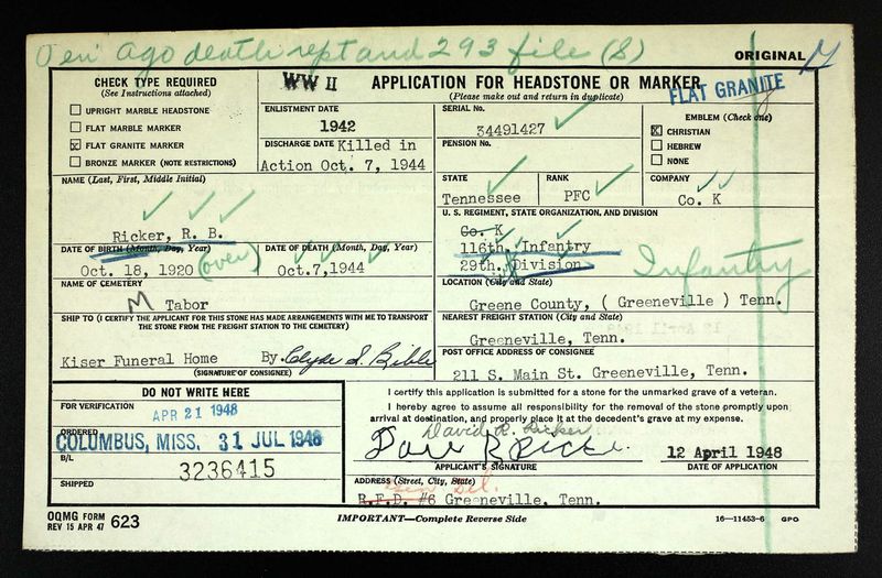 R.B. “Roy” Ricker was born on 18 October 1920 to David Ross Ricker and Ressie T. Harrison