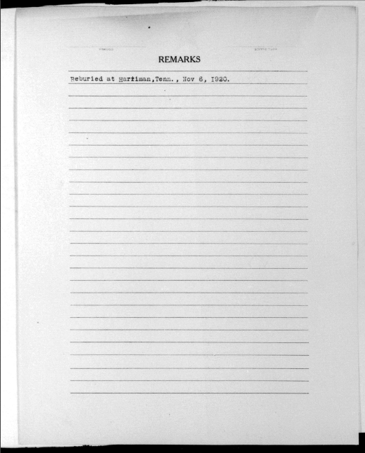 - Burial/Memorial Location: Harriman Cemetery, Walnut Hill, Roane County, TN