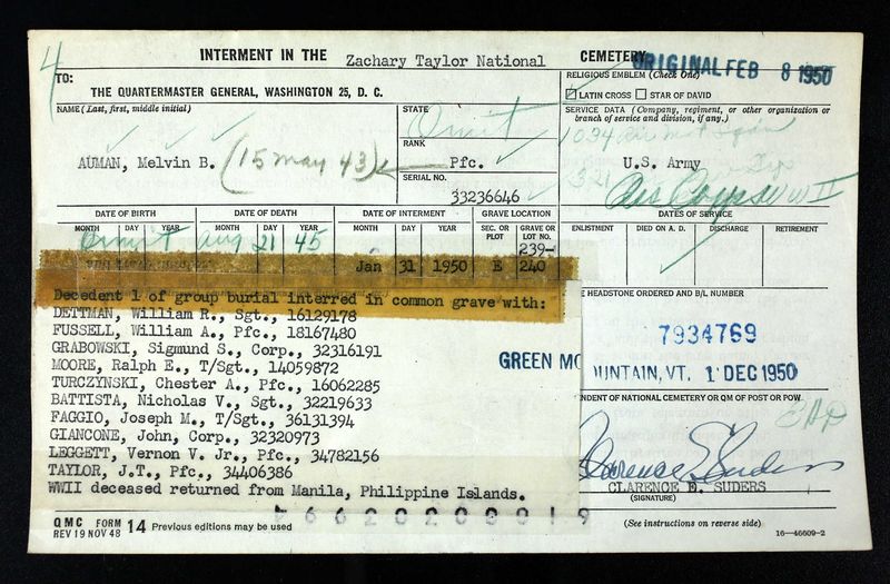 - Burial/Memorial Location: Zachary Taylor National Cemetery, Louisville, Jefferson County, KY
