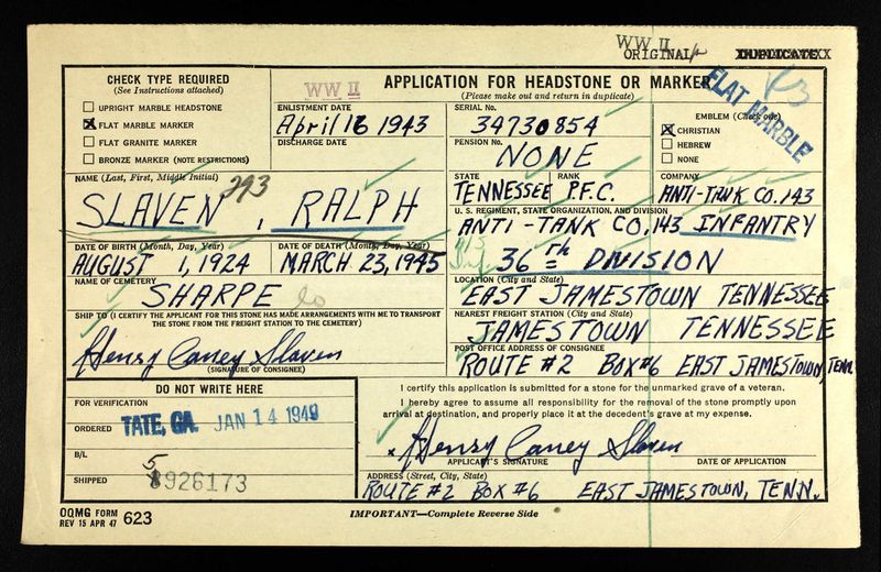 - Burial/Memorial Location: Sharpe Cemetery, East Jamestown, TN