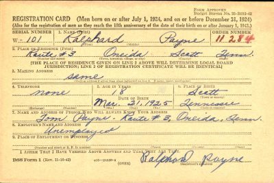 Funeral services for Pfc. Ralphard Payne will be held at the Black Oak church next Sunday afternoon at one o’clock. Pfc. Payne is the son of Tom and Daisy Payne, who live west of Oneida. He was killed in action in Fontaine, France on November 29, 1944.