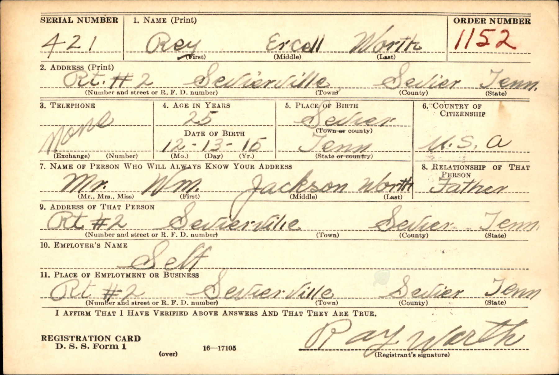 Ray Ercell Worth was born on 13 December 1914, the son of William Jackson Worth and Bertie Angeline Keeler.