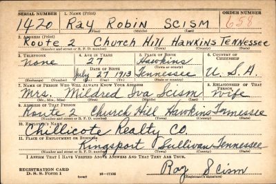 Private Scism was employed by Holston Ordnance Works before entering the service.