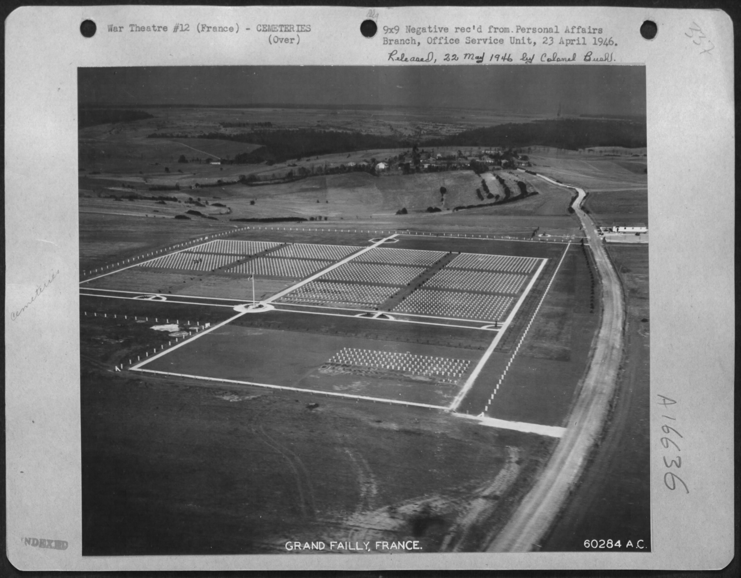 He was initially buried at Grand Failly Cemetery at Longuyon, France and was reburied at Luxembourg American Cemetery, Luxembourg City, Luxembourg, Plot D Row 8 Grave 1.