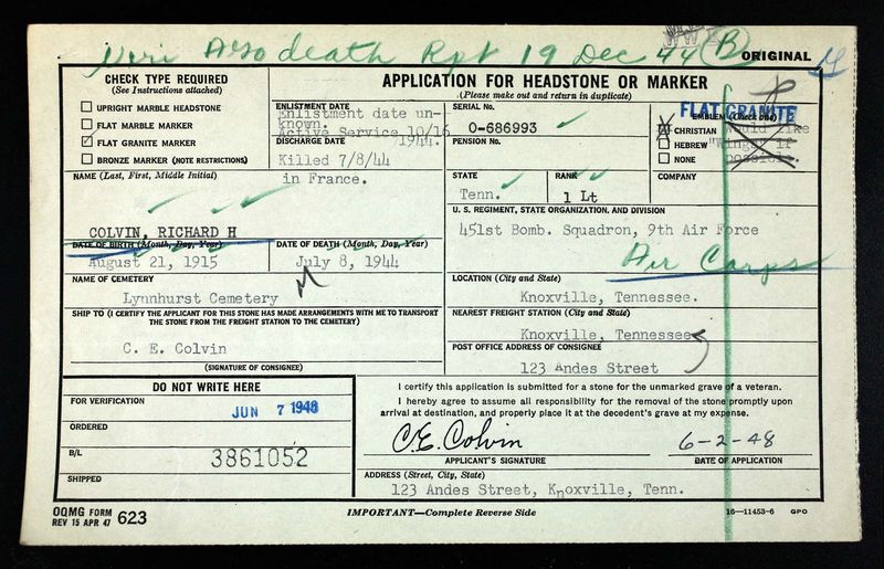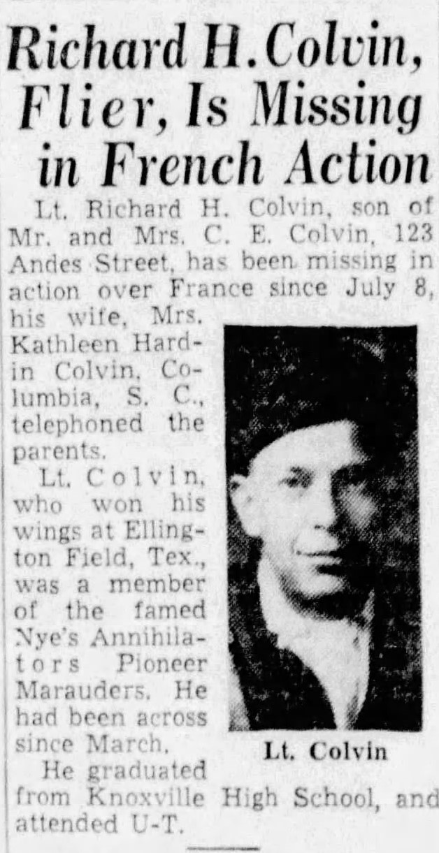 Co-Pilot, 2nd Lt Richard W. Colvin