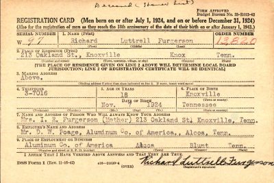 Richard Luttrell Furgerson was born on 7 November 1924 in Knoxville, Tennessee, the son of Isham Roscoe Furgerson and Louise Luttrell Galyon. He attended Knoxville High School and enlisted on July 21, 1943, in Fort Oglethorpe, GA