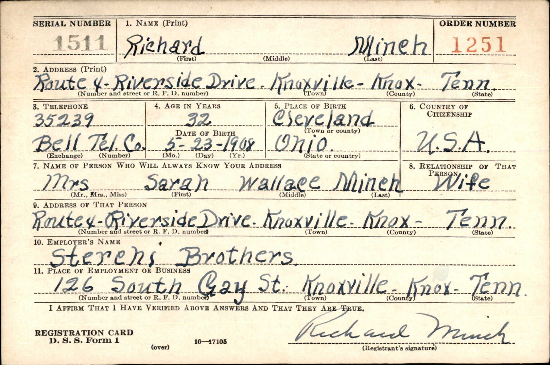 He was a graduate of East Technical High School in Cleveland, Ohio in 1926. Enlisted on November 1, 1942, in Fort Oglethorpe, GA