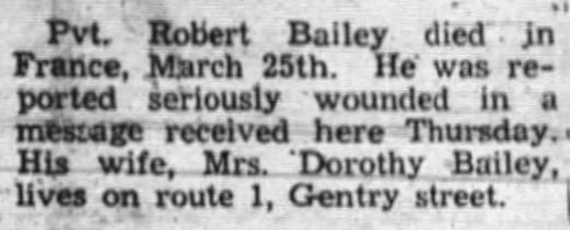 Robert Bailey was the son of Samuel G. Bailey and Bathilda Harris. He was the husband of Dorothy Bailey.