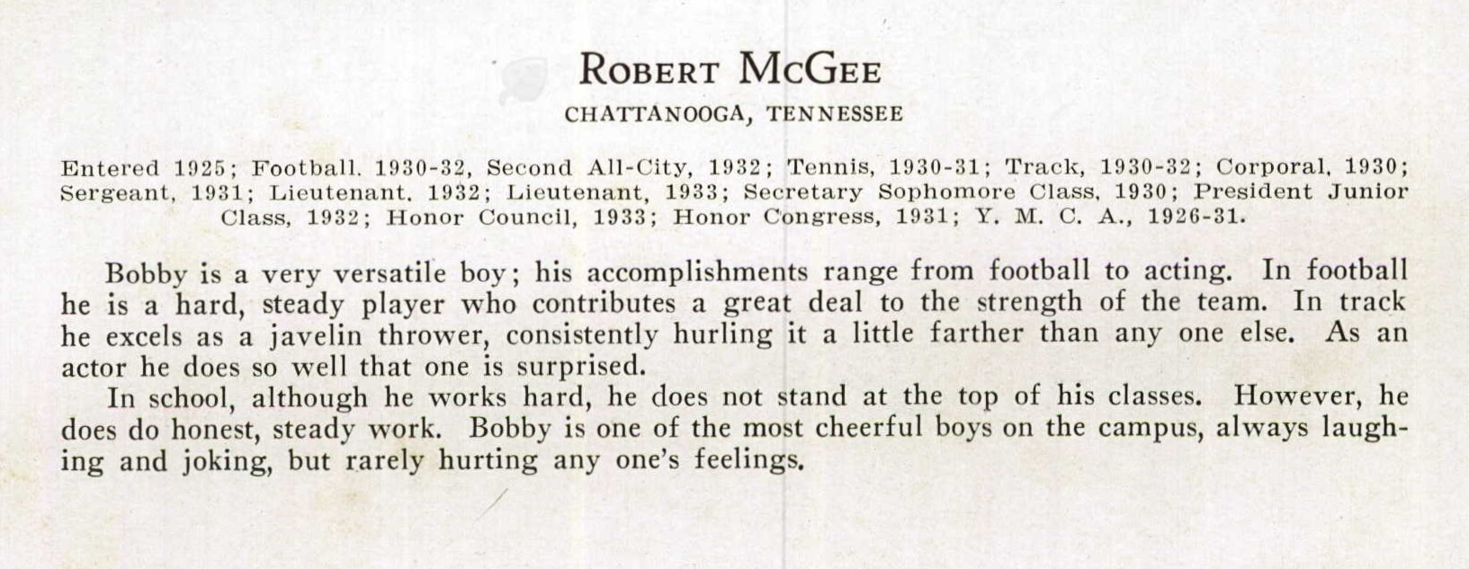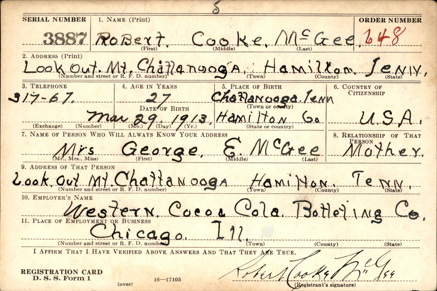 Robert Cooke “Bobby” McGee was born in Chattanooga, Tennessee to George Earnest McGee and Adelaide “Addie” Divine.