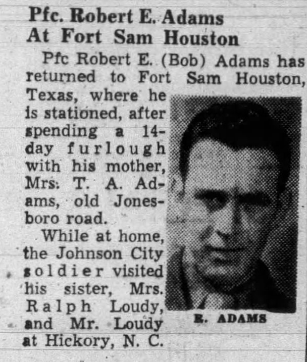 Robert was 21 years old and the son of Tennessee Adams and Eva Mae Johnson. His brother Jack served in the United States Army during World War II and was a German Prisoner of War. After Robert went missing the family maintained contact with Kitty in Germany, but sadly that ended after he was declared dead and she never made it to Tennessee.