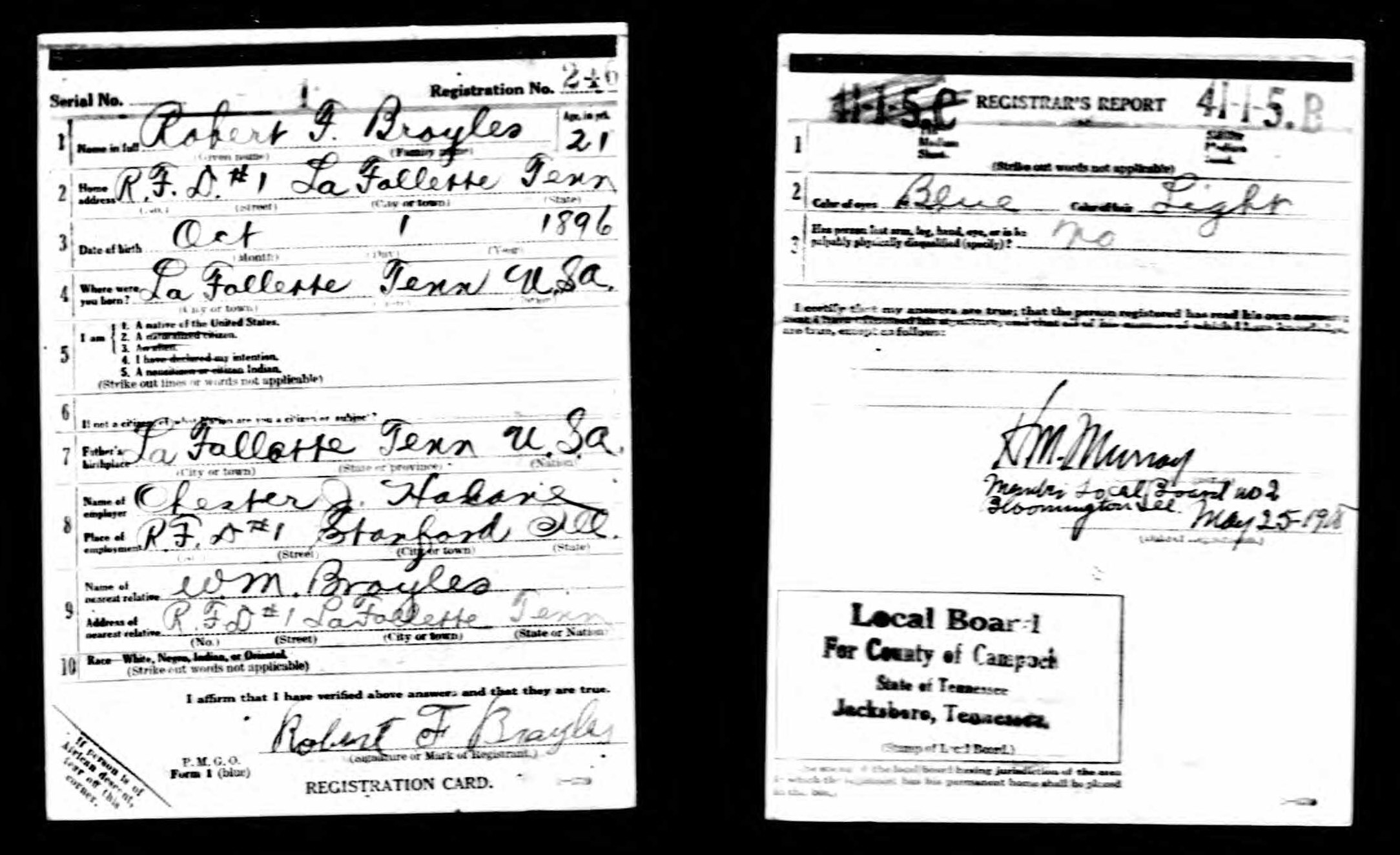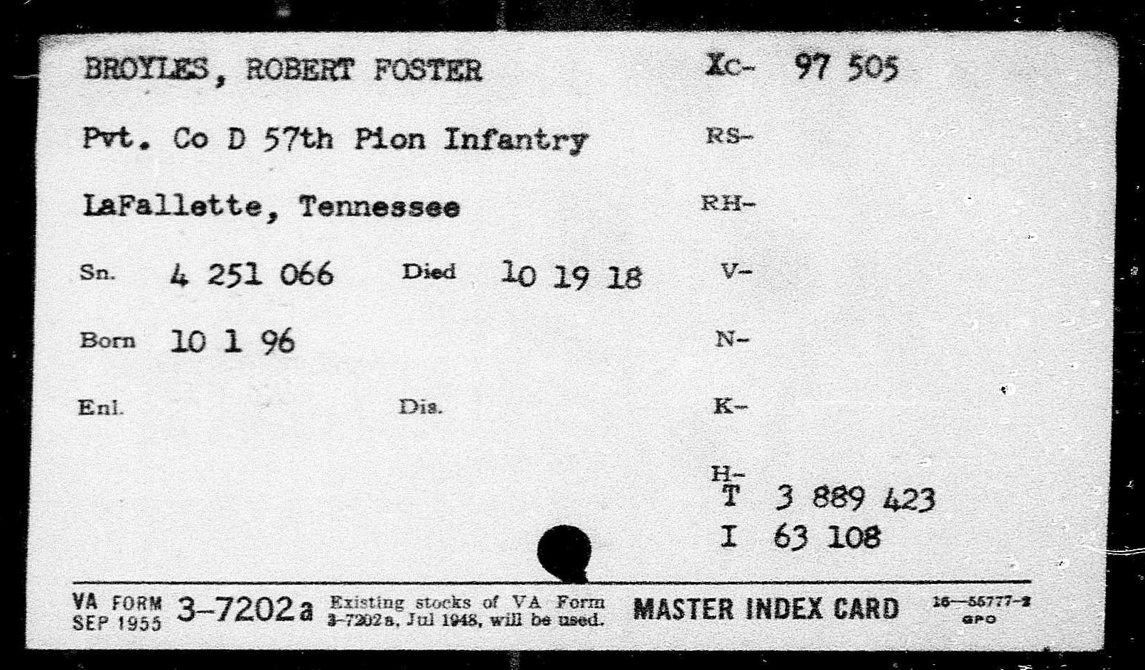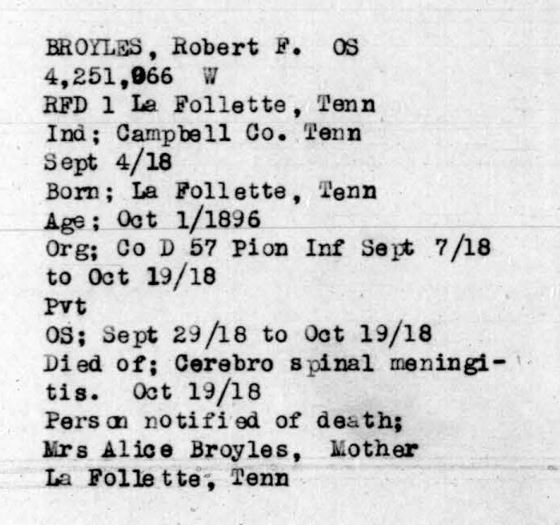 Robert Foster Broyles was born in 1896 in LaFollette, Tennessee, son of Alice Broyles