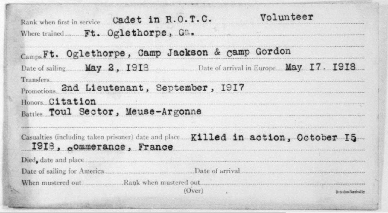- Burial/Memorial Location: Meuse-Argonne American Cemetery, Romagne, France