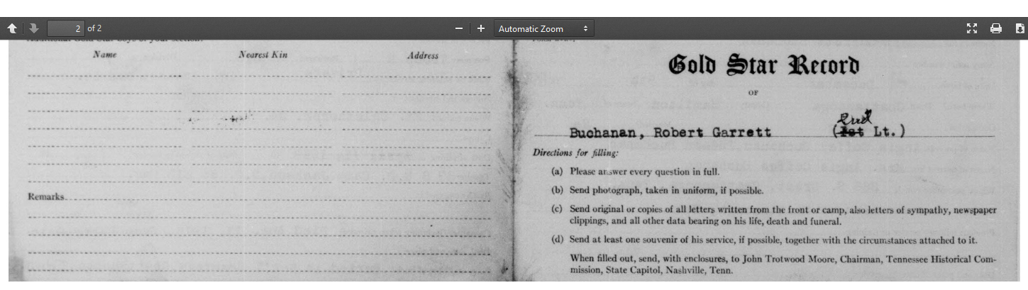 The picture of Lieutenant Buchanan is from the Chattanooga Sunday Times Memorial Supplement, May 25, 1919.