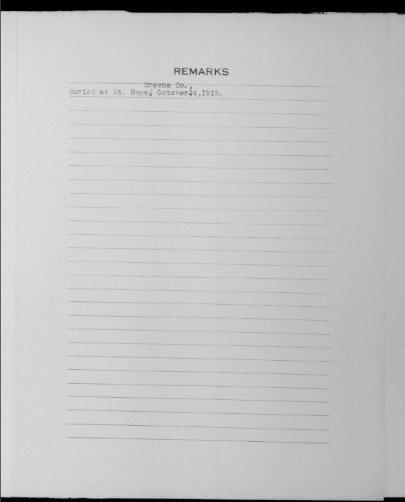 - Burial/Memorial Location: Mount Hope, Greene County, Tennessee